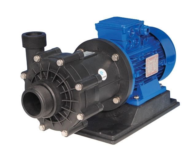 • Korpus pompy i wirnik: Wykonane z Polipropylenu (PP) lub PVDF, co sprawia, że te pompy magnetyczne wykazują doskonałą odporność na szerokie spektrum odczynników chemicznych.